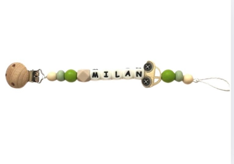 Speenkoord met naam - crème auto